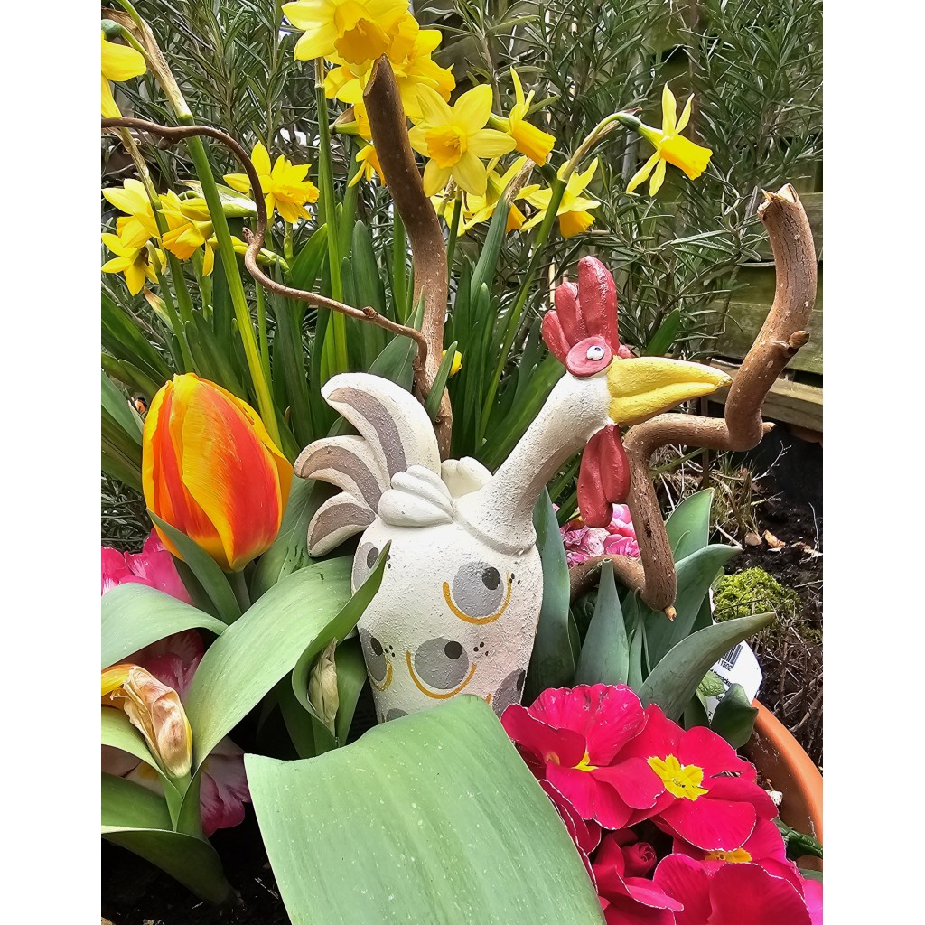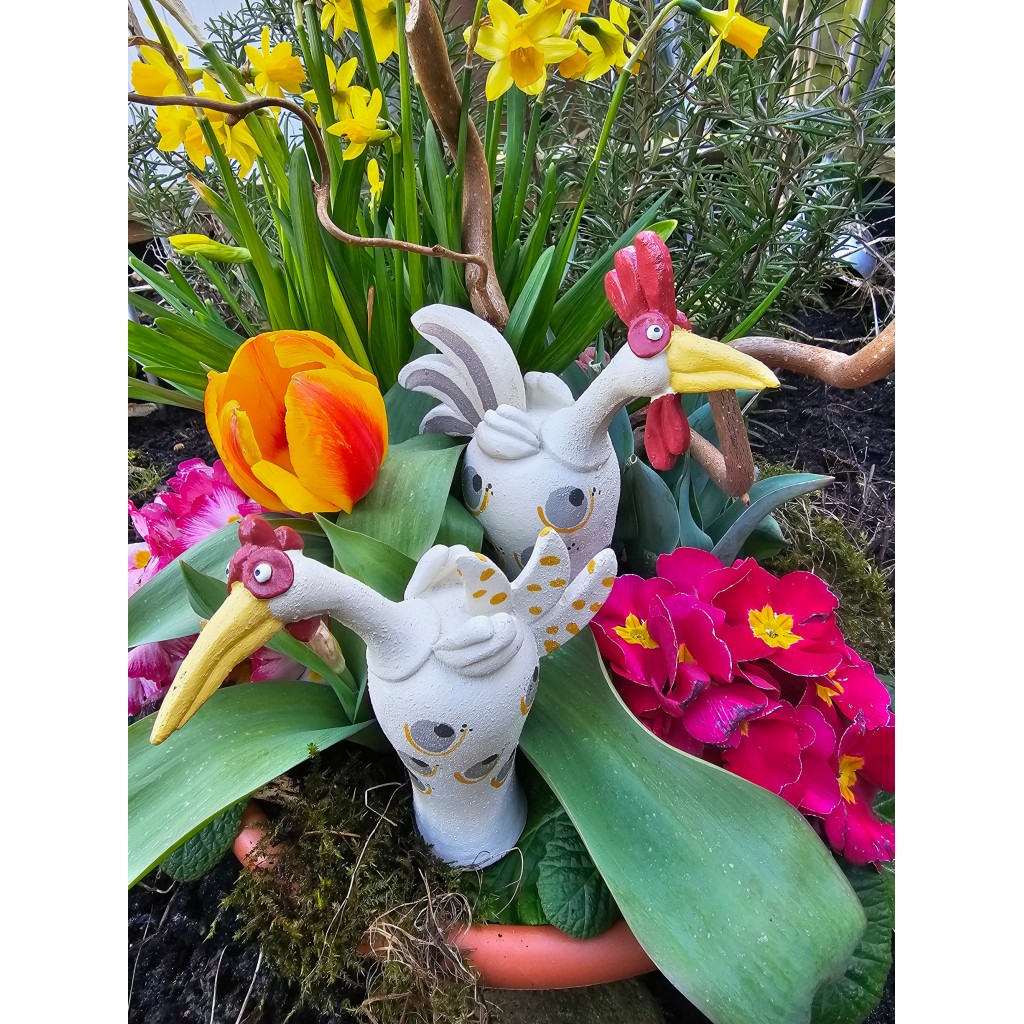 Vergesse klassische Osterdeko – hier kommt Gunnar. Mit seinem unverwechselbaren Blick, dem kecken gelben Schnabel und seinem stolzen Federkleid ist dieser Hahn weit mehr als eine bloße Figur. Er ist ein Statement für alle, die Design mit einer Prise Humor lieben.