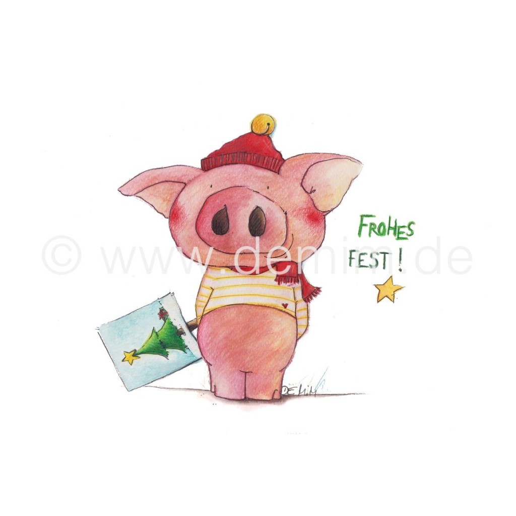 Postkarte Miriam Kramer Weihnachtsschwein
